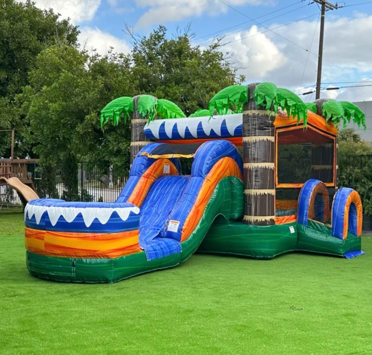 Book our tropical bounce house rental today and turn your party into a backyard paradise!!
